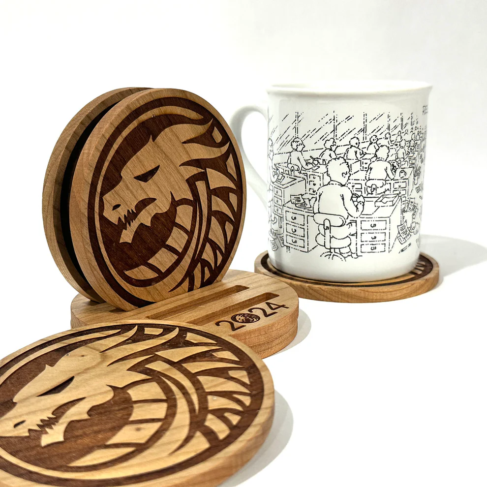 Set of 6 Dragon Coasters Set Circle Unique Gifts Wood Drink Coasters Housewarming Gift Gift Cup Drink Holder Table Top Protection Home Decor